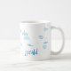 Faites, faites, faites, faites - C'est le requin-bébé qui nage dans cette tasse. Un requin gris bleu sur un arrière - plan de poisson bleu, d'eau et de bulles. Customisez le nom et changez bébé en ce que vous appelez votre petit garçon. Coordonner les dessins pour les requins papa, maman, grand-mère, grand-père ainsi que les requins bébé garçon et fille. Disponible également sur d'autres produits.