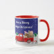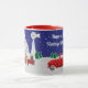 Petit Camion Rouge et tasse Antique Grange Blanche. Avec l'oeuvre originale "Little Red Truck" de Rick Ellinger. Texte : Joyeux Noël Vintage ! La collection d'antiquités comprend un vieux tracteur rouge. Un cadeau parfait pour le petit collectionneur de camion rouge ou un antiquaire ou collectionneur sur votre liste de cadeaux.