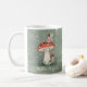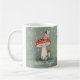 Fée minuscule perchée sur un champignon et scène Whimsical brillante avec un champignon tacheté rouge et blanc