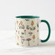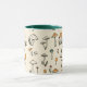 Mug dans un motif de champignons fantaisie avec des champignons colorés dans les tons rouge, orange, vert et blanc. Parsemé dans un arrière - plan beige, les accents feuillus rehaussent l'esthétique naturelle, ludique et organique.