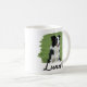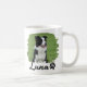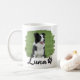 Celebrate your favorite four-legged friend with this personalized Border Collie photo mug! Featuring a black-and-white Border Collie sitting in a grassy field, framed by a creative green brush-stroke border for a modern artistic touch. The name “Luna” appears in bold script lettering with a small paw icon for added charm.
