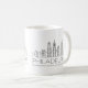 Cette tasse comporte une illustration stylisée de l'horizon unique de la ville avec son nom dessous.