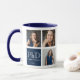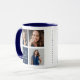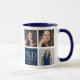 Un cadeau de graduation de la tasse photo de doctorat. Cette tasse de keepsaké, avec trois modèles photo, vous permet de choisir plusieurs photos du diplômé, des photos de proches célébrant l'obtention du diplôme, ou une combinaison des deux. Son design bleu et blanc comprend le nom de la diplômée, le diplôme, l'année et le mot félicitations. Prêt à customiser ce cadeau ? Ajoutez simplement vos mots et vos photos, ajoutez cette tasse à votre panier, puis célébrez l'accomplissement majeur de votre diplômé. Photo Blue PhD Graduation Café Mug Conception de jour férié | ©Melissa Patton - Designer