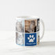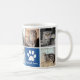 Cette belle tasse photo pour animaux de compagnie est personnalisée avec d'adorables photos de votre chatte sucré. Customisez ce cadeau chic avec vos propres photos de chatte personnalisées autour d'un carré bleu cool avec un empreinte de patte blanc mignon et le nom de votre chatte mâle au centre.