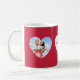 Un arrière - plan de couleur rouge décoré de coeurs blancs, 2 cadres de coeur photo. Personnalisez et ajoutez votre nom.