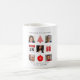 Ajoutez 5 photos et du texte pour personnaliser ce collage photo unique mug de Noël. Avec des icônes modernes en rouge.