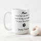 Surprenez maman pour son anniversaire, la fête des mères, ou juste parce qu'avec cette super mignonne tasse de maman de chien. Maman... J'adore comment on n'a même pas à dire haut et fort que je suis votre enfant préféré. Personnalisez avec la photo préférée de la maman du chien, et le nom. DROIT D'AUTEUR © 2020 Judy Burrows, Black Dog Art - Tous droits réservés. Photo personnalisée Drôle Chien Maman Café Mug