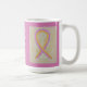 Phyllodes La tumeur est un cancer du sein rare. Il utilise un ruban de sensibilisation rose et or pour montrer son soutien à sa prise de conscience. Cette tasse personnalisée comporte deux peintures d'art d'ange gardien de couleur rose avec le message "I Hope and Support Phyllodes Tumor Awareness!" Les tasses à café ou tasses à ruban d'art de l'ange gardien de la conscience rose personnalisées peuvent être customisées de messages personnalisés pour créer de grandes tasses de cause pour des collecteurs de fonds de sensibilisation, des cadeaux de tasse de conscience, ou d'autres événements spéciaux ou pour des occasions de soutien. Faites vos propres mots customisés pour un message personnel d'espoir et de soutien à partager!