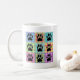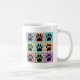 Une courtepointe motif de chien colorée. Des rayures et des carrés dans de nombreuses couleurs. Toutes les images numériques. Des tasses à café personnalisées pour les personnes qui aiment les chiens. Idée cadeau.