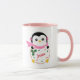 Cette tasse de Noël présente une illustration originale de Piper, un pingouin de Noël mangeant un gâteau de Noël géant.