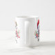 Créez une tasse de Noël personnalisée unique qui comporte un manchot mignon dans un chapeau de Père Noël rouge et une écharpe, entourée de verdure et d'ornements festifs.