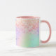 Un arrière - plan holographique branché aux couleurs pastel unicorne et arc-en-ciel rose, violet, or rose, vert menthe. Décoré avec de la poussière de parties scintillant imitation. Personnalisez et ajoutez un nom, écrit avec un script de style à la main moderne avec des swashes. Lettres violettes. Pour que les swashes ne suppriment que le nom de l'échantillon, laissez les espaces ou émoticônes devant et après le nom.