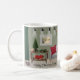 Notre Mug pittoresque de Noël vous invitation dans un espace cosy à la maison où vous découvrirez un décor moderne à l'ambiance un peu vieillotte. Dans ce décor de Noël à la maison est un must ! Les rêves et les poinsettias de mélèze abondent, cette tasse déborde de joie festive et de charme exubérant. Fait amusant : Le carré lance l'oreiller dans cette scène est disponible à l'achat dans notre "Regal Floral Red, Green, Ivory Collection." Offrez un cadeau de Noël festif au coussin et à la tasse !