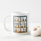 Tasse à café monogrammé avec un beau design de plantes en pots dessinés à la main assis sur une corniche de fenêtre. Grande idée cadeau d'anniversaire personnalisé pour l'amant du café, amant plante.