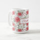 Cette tasse festive de Noël présente un motif de poinsettias rouges et blanches, de baies rouges, de cônes de pins, de branches de pins et d'autres verdure. Dans le centre est un endroit pour vous de personnaliser avec votre nom dans un script élégant. Cela ferait un beau cadeau pour un ami ou un collègue. Remplissez-le de chocolats !
