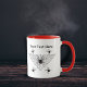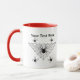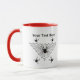 Cette tasse de café ou de thé a des toiles d'araignée noire en forme de triangle avec des araignées de veuve noire poison avec des marques de sablier rouge dans les toiles. Customisez votre texte avec le modèle.