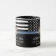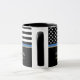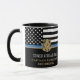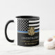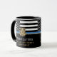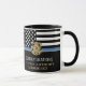 Cette conception comprend un drapeau de la police avec des rayures noires et blanches, ainsi qu'une fine bande bleue. Customisez avec le nom de l'agent d'application de la loi, du shérif, du capitaine ou du chef qui prend sa retraite ou qui est diplômé. Une excellente façon de féliciter le nouveau retraité ou diplômé pour sa retraite ou son diplôme de l'académie de police.
