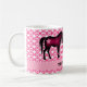 La tasse de café personnalisée par poney rose, cette tasse mignonne de poney pour des enfants a deux poneys roses et une étoile rose, sur un arrière - plan des chaussures et des coeurs roses de cheval. Conception très mignonne pour des enfants de n'importe qui qui aime des poneys. Ajoutez le nom ou le texte à la conception.