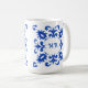 Elegant blue and white Portuguese ceramic tile featuring a central round medallion and simple round floral ornaments in each corner. Inspired by classic Lisbon tilework, this clean and timeless design is perfect for customization — ideal for names, dates, or meaningful phrases.