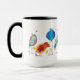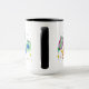 Une tasse en céramique à deux tons avec des poulets blancs à l'aquarelle peinte à la main.