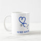 Créez un cadeau sucré personnalisé pour votre infirmière ou votre médecin préféré. Cette tasse à café présente une illustration d'un stéthoscope bleu en bleu et est prête à être personnalisée avec votre nom ou autre message.