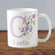 Le design présente Monogram & Name avec Fleurs de chaque côté dans un style pastel couleur eau. L'initiale est la lettre C. Charlie mug. Un cadeau pour Charlie.