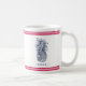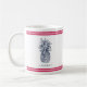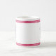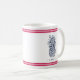 Preppy chic mug en rose vif et marine dispose de bandes rayées de rose fuchsia brillant en haut et en bas, avec une illustration d'ananas de style vintage et votre nom ou choix de personnalisation en bleu marine classique.