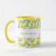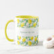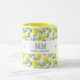 Une tasse décorée d'un motif citron. Texte : Pressez le jour. Personnalisez et ajoutez vos initiales et votre nom de monogramme.