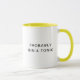 Tasse personnalisée avec design de texte minimaliste tendance avec "Probablement gin & tonic" dans la typographie classique sans serif. Fait un cadeau sympathique pour vous-même ou quiconque aime les cocktails gin, gin et tonique, ou tasses à café avec des paroles amusantes. Le texte est modifiable, vous pouvez donc le customiser des deux côtés. Disponible en plusieurs styles et couleurs.
