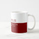 A half dark red (editable color) and white coffee mug, personalized with your name and profession (business administration)