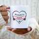 La tasse "Promue à Nana" présente un coeur et une année de début personnalisable pour célébrer l'événement heureux et le nouveau statut de famille.