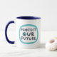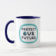 Ce dessin présente l'expression "Protéger notre avenir" en lettres modernes sur arrière - plan blanc.