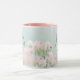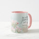 Café et tasse à thé avec une citation inspirante L'écriture représente un simple jardin botanique avec de jolies fleurs roses et un arrière - plan bleu doux. Il présente la Bible Verse Psaume 46:10, "Soyez calme et sachez que je suis Dieu."