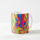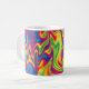 Une tasse au design psychédélique coloré et abstrait avec des motifs ondulés.
