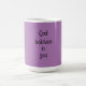 Une tasse avec l'expression "Dieu croit en vous" sur un arrière - plan violet