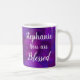 Purple Inspirational You are Blessed Coffee Mug Personnalisé élégamment conçu tasse violet. Faites savoir à votre ami ou membre de votre famille qu'ils sont aimés et bénis d'une manière spirituelle. Parfois, un ami a besoin de le savoir par un mauvais jour ou s'il est en deuil d'une perte ou juste pour leur faire savoir qu'ils sont aimés et bénis par une journée ordinaire. Nous avons tous besoin d'un ascenseur positif de nos jours ! Pourquoi ne pas offrir le don de l'amour dans un temps de besoin.