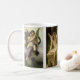 Une belle tasse avec quatre différentes vintages de la mythologie victorienne réalisme peintures d'art fine peintures de William Adolphe Bouguereau (1825-1905). Le Prisonnier (Le Captif) (1891) a un ange tenant un papillon. Brother and Sister (1887) est un portrait de famille avec une fille tenant son jeune frère. Work Interrupted (1891) présente un portrait d'une femme assise avec un ange qui murmure un secret à l'oreille. L'enlèvement d'une psyché (Ravissement de la psyché) (1895) est accompagné d'un ange transportant une jeune femme morte au ciel.
