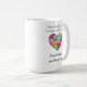 A cozy, handmade-inspired design featuring a colorful patchwork heart stitched together from vibrant fabric pieces. Above it, the phrase “Piece by Piece Made with Love” captures the care and creativity behind quilting, while the personalized touch with someone's name and then “quilting mug” adds warmth and individuality. —perfect for any quilting enthusiast.