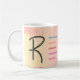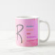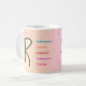 Cette tasse sera un favori pour tout le monde, de votre petite-mère douce à votre soeur adolescente. Avec le bon message, un mug peut devenir le compagnon précieux de n’importe qui pour les années à venir. Ce design présente une belle lettre dessinée à la main "R" en noir cursif sur un arrière - plan d'aquarelle étonnant. Le côté gauche présente un dégradé chaud de jaune à rose, tandis que le côté droit affiche un dégradé doux de rose à jaune. Autour de la lettre sont des mots vibrants de différentes couleurs, dont le bleu, l'orange, le rouge, le violet et le rose, mettant en évidence des traits positifs commençant par la lettre "R". L'effet global est un design visuellement attrayant et stimulant qui célèbre la beauté de la lettre "R" et ses qualités associées. L'arrière - plan aquarelle ajoute une touche d'élégance et de sophistication, ce qui rend ce design parfait pour des raisons d'inspiration ou de motivation.