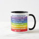 Show your love and support of the whole human family with this durable mug. The rainbow mug says, "We strive to be radically inclusive. This land is indigenous land. No human being is illegal. Black lives matter. Climate change is real. Women's rights are human rights. All genders are whole and good. Love is love."