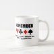 Êtes-vous descendu horriblement à la table du pont, de l'ordre de -400, -500, -800, etc ? Laissez votre côté joueur de pont cirer avec cette tasse qui contient les costumes de quatre cartes, ainsi que le rappel suivant qui dit à tout joueur de pont qui s'engage dans un comportement d'enchère risqué ou un mauvais jeu : "Rappelez-vous qu'il y a au moins mille façons de mourir à la table de pont". Pas besoin d'être un joueur de pont ou un professeur de pont passionné pour profiter de ce son rappel que le pont est un jeu d'humble en effet!