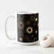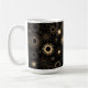 Soleils stylisés rétro avec différents styles de rayons et rayons dans les tons clairs et dorés foncés sur un arrière - plan noir.