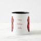 Cute red round holiday ornament with bow appears on this coffee mug you can customize.