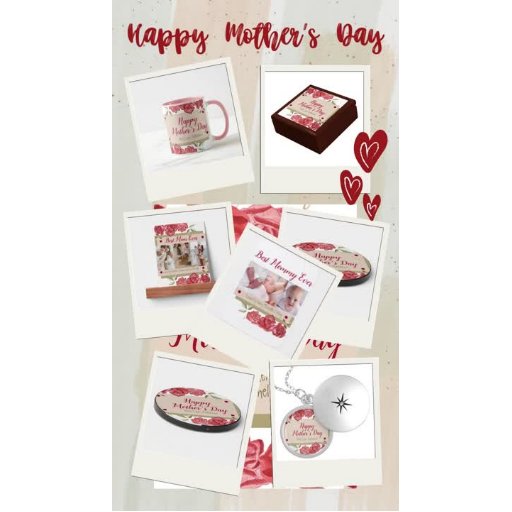 Elégant cadre floral d'aquarelle moderne de roses en rouge, rose et vert couleurs et 3 beau collage photo pour votre Meilleure Maman jamais sur la Fête des Mères. Parfait pour une mère bien-aimée. Personnalisez les photos, l'année et les noms.