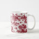 A beautifully detailed red toile countryside ceramic mug featuring lush trees, serene outdoor scenes, and classic pastoral elements. Designed for toile lovers and nature lovers, its timeless charm makes it an ideal gift for anyone who appreciates classic toile artwork and nature-inspired designs.
