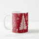 Celebrate the season with this festive coffee mug featuring a bold red background and a variety of stylized white Christmas trees and snowflakes. The modern, hand-drawn look adds a playful yet elegant touch to your holiday mornings. Perfect for sipping cocoa or gifting to Christmas lovers.