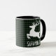 Mug Reinder de Noël Vert & Noir Plaid Nom personnalisé
