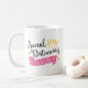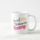 Avez-vous pris des distances sociales depuis qu'il était cool ? Lancez votre statut d'introverti et faites votre part pour la santé publique avec ce drôle de design de tasse à base de typographie avec la citation "reine de la distanciation sociale" en lettres colorées avec une illustration de la couronne et une bannière de ruban style spectacle.