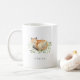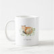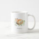 La tasse d'inspiration boisée présente un renard d'aquarelle douce niché dans un lit de feuilles et de feuillage d'eucalyptus verts. Personnalisez avec un nom, une initiale ou un monogramme en dessous en lettres grises classiques.