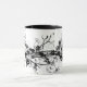 Un art de encrage de la floraison fleurit à travers la tasse.